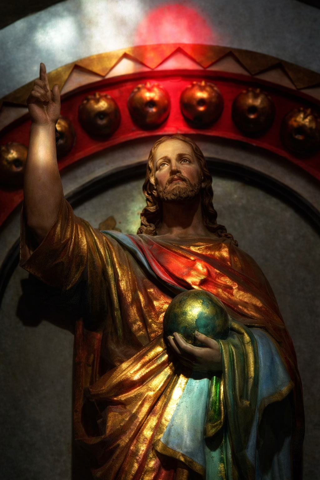 In keeping with the broader symbolic program of the church, the “Blue Apples” function as an allegorical marker of time, rather than as a purely visual curiosity. The use of light—intangible, transient, and cyclical—aligns with traditional initiatic modes of communication, where meaning is revealed through recurrence and alignment, not through explicit inscription.