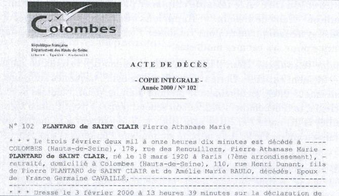 Pierre Athanase Marie Plantard de Saint-Clair passed away on 3 February 2000 in Colombes. He remains remembered as a custodian of lineage, a Knight of transmission, and a Grand Master whose authority derived from continuity, initiation, and responsibility.